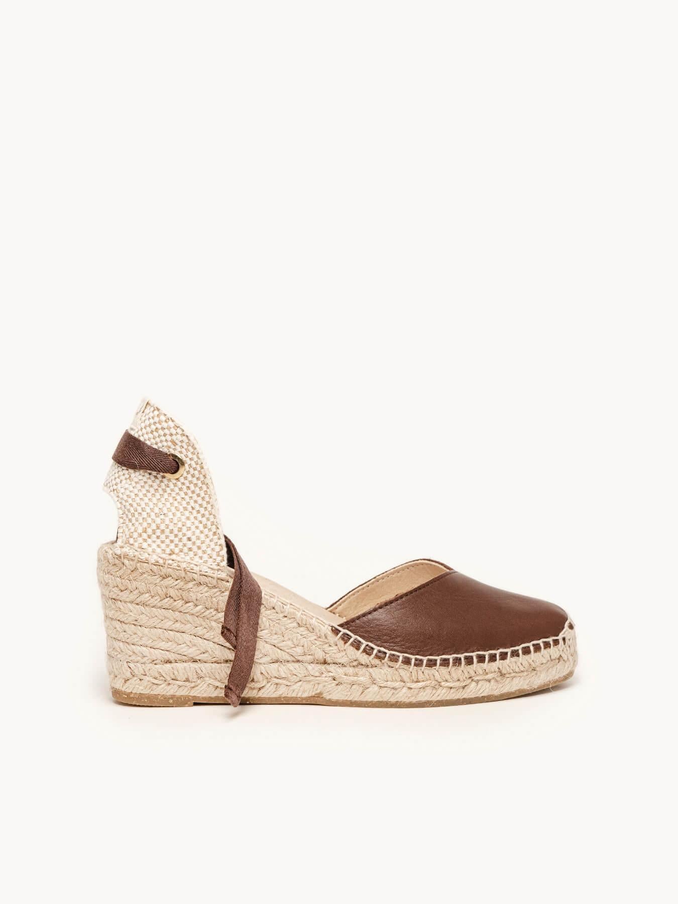 - Cuña de trenza de yute natural con suela de goma reciclada mezclada con fibras naturales