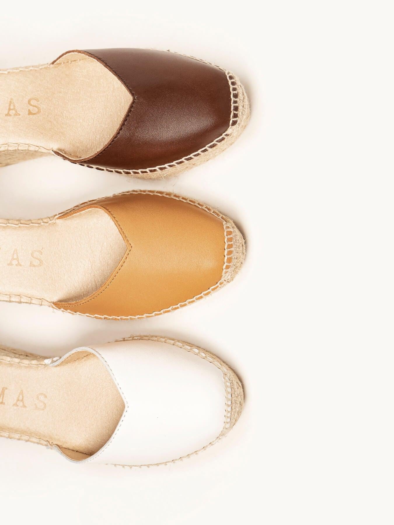 La alpargata de cuña media Romero es nuestro modelo más icónico. Una alpargata valenciana con escote corazón y cintas que podrás llevar con tus atuendos especiales y también con los del día a día. Podrás darle un toque especial porque las cintas se pueden cambiar.