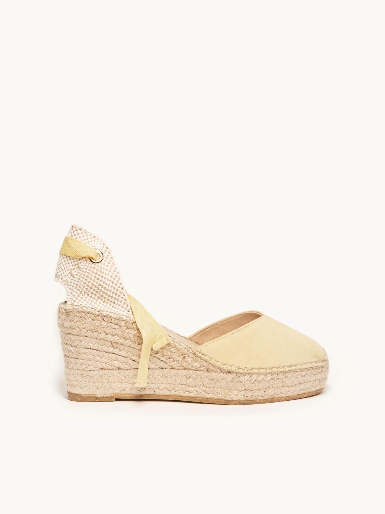 La alpargata de cuña media plataforma Romero, es nuestro modelo más icónico. Una alpargata valenciana de escote corazón con cintas que podrás llevar con tus looks especiales y también con los del día a día. Podrás darle un toque especial porque las cintas se pueden cambiar.
