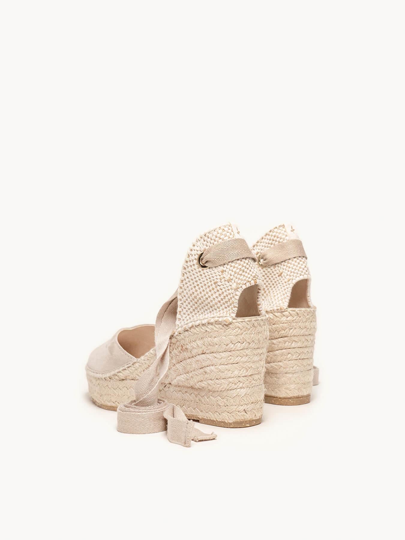 - Cuña de trenza de Yute natural con suela de goma reciclada mezclada con fibras naturales.