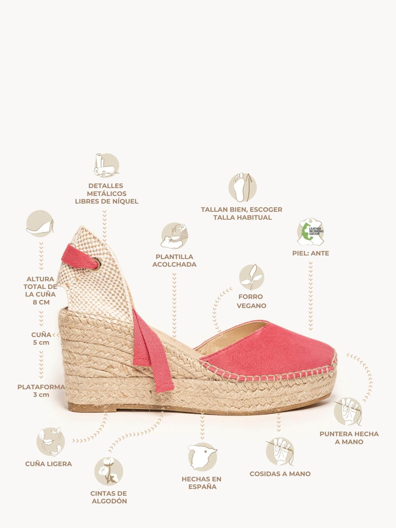 La alpargata de cuña media plataforma Romero, es nuestro modelo más icónico. Una alpargata valenciana de escote corazón con cintas que podrás llevar con tus looks especiales y también con los del día a día. Podrás darle un toque especial porque las cintas se pueden cambiar.